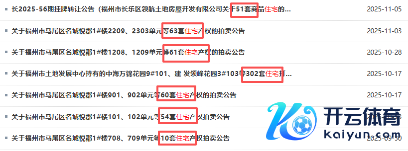 再比如,福州巨匠资源往返网最近一年来发布了数条住宅产权拍卖公告,波及的房产,多达1402套。