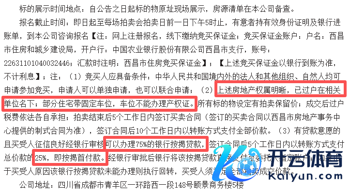 竞拍公告还提到,竞拍者首付仅需2.5成,不错办理75%的银行按揭贷款。