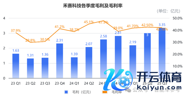 禾赛前三季度毛利为8.54亿元,综合毛利率为42.1%;第三季度的毛利为3.35亿元,对应同期毛利率为42.1%,本年基本守护踏实水平。