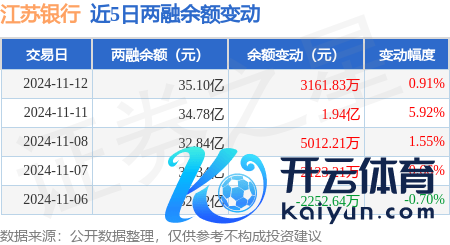 本站音尘,11月12日,江苏银行(600919)融资买入1.56亿元,融资偿还1.25亿元,融资净买入3175.99万元,融资余额35.07亿元,近3个往复日已持续净买入累计2.81亿元,近20个往复日中有12个往复日出现融资净买入。