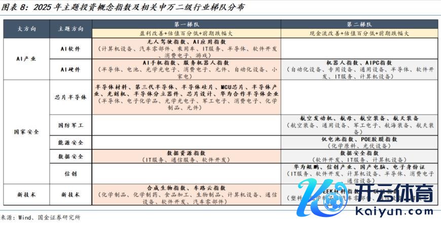 2025Q1宽货币+信用底部回升,市集风险偏好开导,“春季躁动”得当成长主题:AI产业与国度安全。咱们从AI产业、国度安全议论的主题限度中筛选适合条目的观念指数:1)超跌,2020年高点于今个股平均跌幅>75%分位数主要聚首的观念指数;2)估值低廉,观念指数因素平均估值<65%分位数;3)在以上基础上,首选,盈利显著改善:①EPS增速处于样本TOP30%,②EPS趋势改善或拐头进取— —欢腾上述条目的公司占观念指数比重>60%;4)次选,现款流显著改善:观念指数因素的盘算性现款流回升的占比>65%;4)此外,亦不错属意:观念指数因素平均估值<30%分位数。主要聚焦:电子、盘算机、军工和机械。