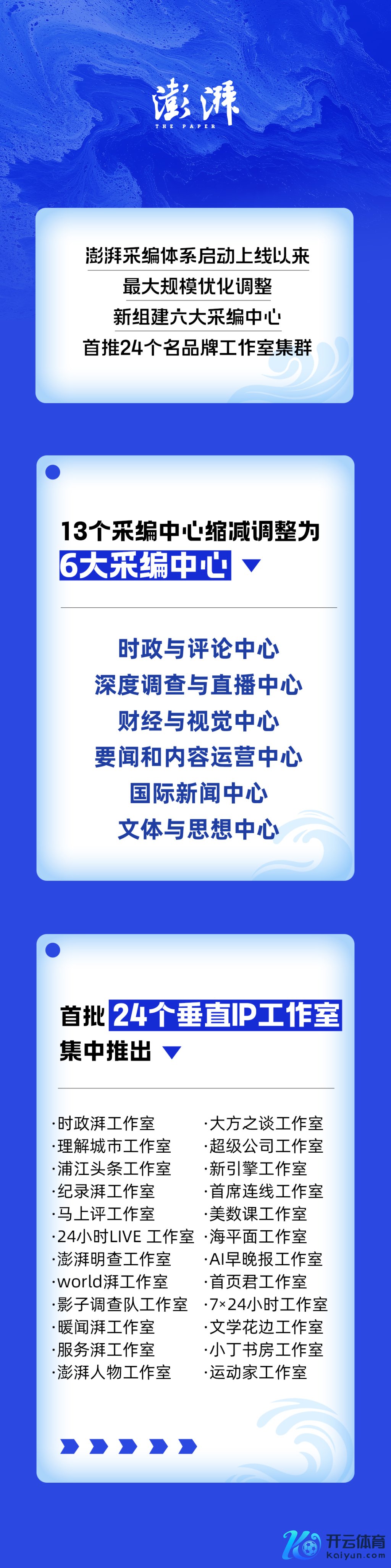 以中枢践诺变革倒逼组织架构诊疗。滂湃新闻将围绕专科范围和紧要主题,发力优质原创践诺,践诺取向从“大而全”全面转向“专深通”,聚焦时政褒贬、海外新闻、公论监督、融媒居品等中枢践诺,将AI时代全面引入坐褥经由,将13个触及践诺采编的中心缩减诊疗至6个采编中心,一次性关停新闻客户端20个栏目和15个酬酢媒体平台账号。