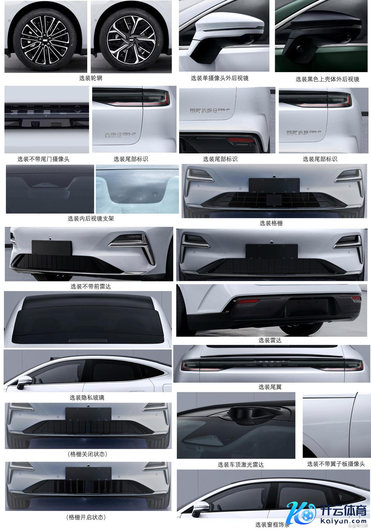 成立方面,星耀8将提供18英寸和19英寸两种轮毂聘请,轮毂尺寸也仅有这两种。其余除了高阶赞成驾驶的一套聘请,主如若底部进气口不错选装主动开闭式格栅,有助于降沉寂耗。另外即是提供饰条的双色聘请,以及隐秘玻璃、尾翼的选装等。