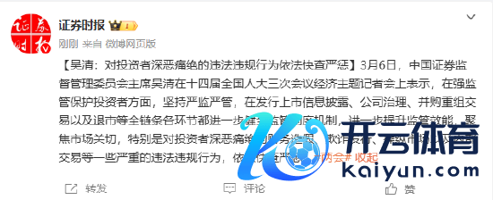 3月6日,中国证券监督料理委员会主席吴清在十四届寰宇东说念主大三次会议经济主题记者会上暗示,在强监管保护投资者方面,坚执严监严管,在刊行上市信息浮现、公司科罚、并购重组交游以及退市等全链条各才智齐进一步健全监管轨制机制,进一步莳植监管效力,聚焦市集温煦,终点是对投资者痛心疾首的财务作秀、诓骗刊行、独揽市集以及里面交游等一些严重的积恶违纪算作,照章快查重办。