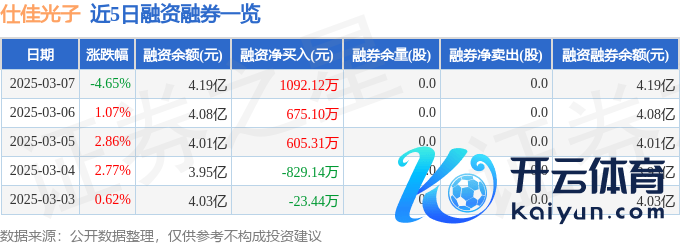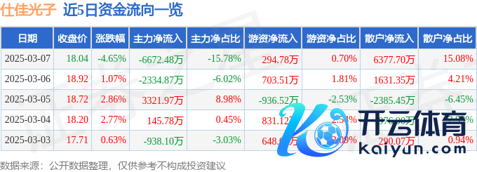 本站音信,端正2025年3月7日收盘,仕佳光子(688313)报收于18.04元云开体育,着落4.65%,换手率5.05%,成交量23.15万手,成交额4.23亿元。